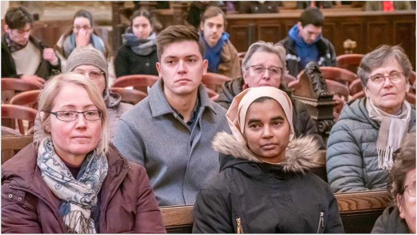 A kétórás imaest elmélkedésekből, a magunkba nézést segítő kérdések átgondolásából, közös éneklésből, csendes percekből és könyörgésekből épült fel, amelyeket mindig egy-egy tized rózsafüzér közös elimádkozása követett a kihelyezett Oltáriszentség előtt.