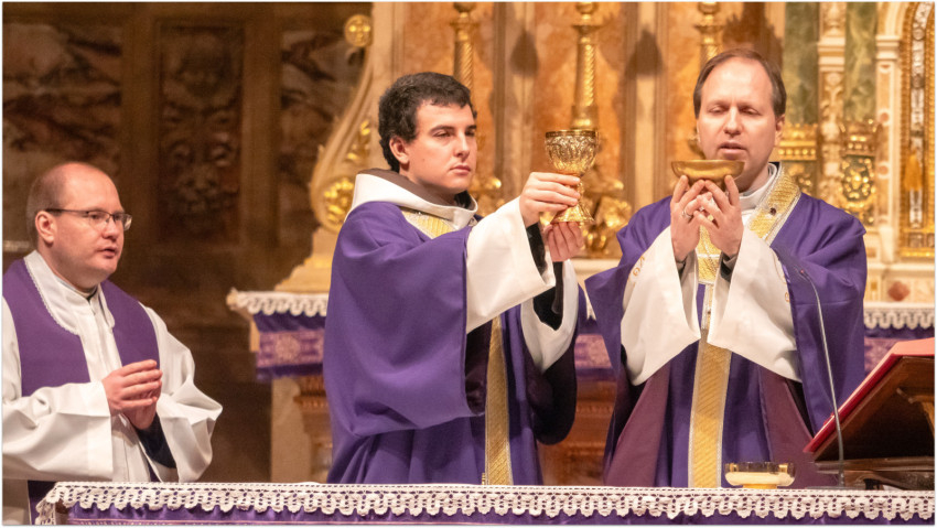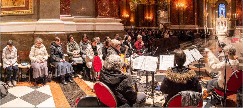 A szentségimádás alatt a szerzetesnővérekből álló zenekar végzett zenei szolgálatot és vezette a taizéi énekeket. A szentmisén, amelyet Mohos Gábor püspök, Berhidai Piusz OFM, a Magyarok Nagyasszonya Ferences Rendtartomány tartományfőnöke és Tóth Gábor SP mutatott be, az esztergomi ferences gimnázium szkólája énekelt.
