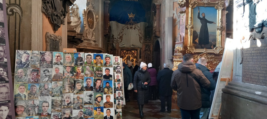 Részt vettünk egy gyönyörű görögkatolikus liturgián a Szent Péter és Pál-templomban, ahol a katonai temetések is zajlanak: egyszerre volt itt jelen a hit kegyelme, öröme és a háború nyomorúsága. Az ünnepélyes dallamok, tömjénfüst kísérte liturgia közben nehéz levenni a tekintetet a falak mentén sorakozó tablókról, amelyeken az elhunyt katonák fényképei láthatóak.