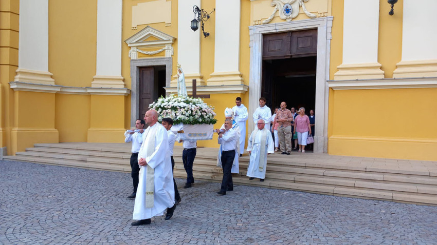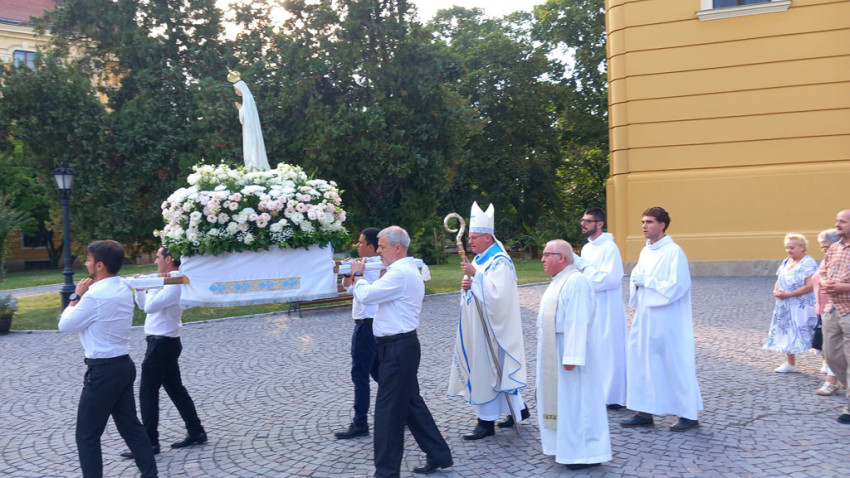 Három ártatlan pásztorgyermeknek jelent meg 1917-ben Mária a portugáliai Fatima közelében; napi imádságra buzdította, és arra kérte őket, hogy minden hónap 13-án jöjjenek el Cova da Iriába. Külön kérte őket, hogy imádkozzanak Oroszországért, azért, hogy a tévtanai ne terjedjenek el – emlékeztetett prédikációjában Pálos István kanonok, székesegyházi lelkész. – Mária imára való buzdítása napjainkban is aktuális, hiszen háborús feszültségben élünk. Ilyen helyzetben Isten az, aki segíteni tud, Mária pedig a legnagyobb szószólónk, közbenjárónk. De nemcsak a bűnösök megtéréséért, hanem saját magunkért is imádkoznunk kell, hiszen korunk embere eltávolodott az Egyháztól, felelőtlen riogatásnak, illetve ígéretnek tartja a poklot és a mennyországot – figyelmeztetett a szónok.