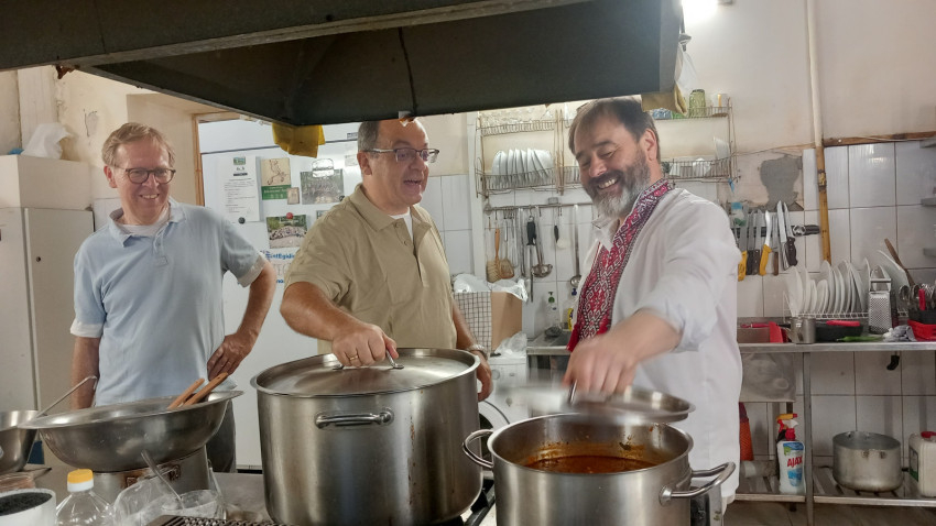 Egy kis szeletét láttuk a lvivi közösség életének, hiszen nem jutottunk el a konténervárosba, ahol ezer kelet-ukrajnai menekült él lakókonténerekben, reménytelen helyzetben: sok gyerek, akiknek béke iskolája néven hetente többször fiatalok – köztük is nagyon sokan menekültek – tartanak foglalkozást; sok idős, akikkel együtt imádkoznak; családok, akiket segítenek.