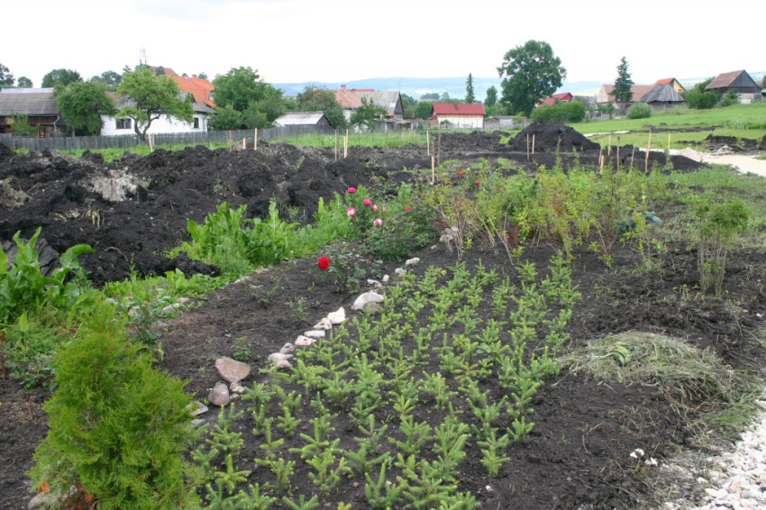 Amikor arról kérdezem, mindig is szeretett-e kertészkedni, nevetve mondja, tömbházban nőtt fel, nem sok köze volt a kertészkedéshez, kezdetben még az uborkát sem találta meg az uborkalevél alatt. Mosolyogva meséli, hogy amikor birtokba vették a kertet, ennek egyik sarkában felfedeztek két tő levendulát, három tő metélőhagymát, négy tő izsópot és párlófüvet. „Tőosztással rögtön szaporítottuk a levendulát, lett belőle nyolc tő, de szaporítottuk a többi tövet is. Én akkor még a párlófüvet nem tudtam beazonosítani, még Csaba testvérnek is megmutattam, hogy termesztjük, de nem tudom, mi az. Két hétre rá betoppan hozzánk Szabó Gyuri bácsi, aki segített beazonosítani. Na innen indult a gyógynövényes kert. A bükki füvesember szakmai, lelki támaszunk. Olyan számunkra, mint egy nagyon kedves családtag, aki 87 évesen nem sajnálja a fáradságot, és évente öt-hat alkalommal ideutazik, hogy pátyolgassa tudásomat és a lelkemet.” Aztán idén a „csíksomlyói levendulás” kiegészült még háromszáz darab tő levendulával, amelyet a gyöngyösi Károly Róbert Főiskolától kaptak.Ottjártunkkor az immár negyedik alakalommal meghirdetett kertépítő lelkigyakorlat zajlott. Egy nappal korábban a Benignitas Egyesülettől átvett egy hektáros pálfalvi haszonkertben tevékenykedtek a vendégek, aztán következett a gyógynövénykert, majd sorra került egy nappal később a gyümölcsös.
