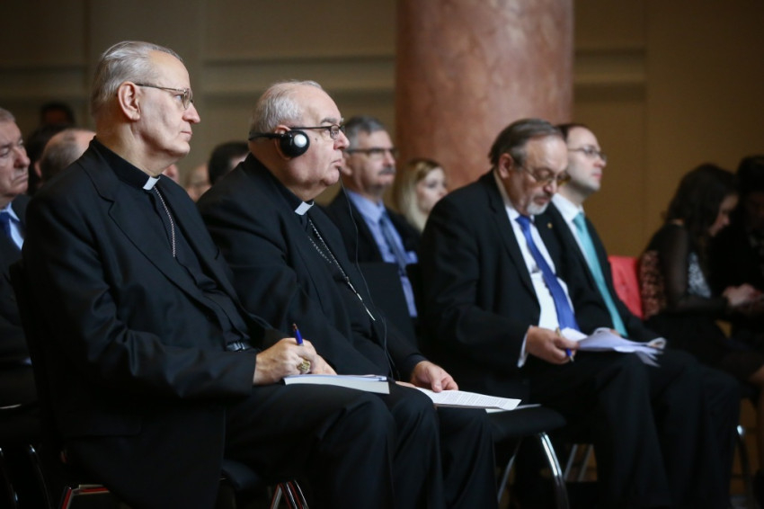 Filoni bíboros elsőként arról beszélt, hogy Európában a különböző kultúrájú, etnikumú népesség együttélése a határok átalakulásához, változásokhoz vezetett. Ebben a sokféleségben az egység három alapra támaszkodhat: a vallás, az emberi jogok rendszere és a művészet, melyek alapvetően meghatározzák az emberek gondolkodását, kultúráját. Lehetséges-e, hogy identitásunkat más alapokról erősítsük meg, ha elszakadunk ezektől a gyökerektől? Lehetséges-e falak felhúzásával védekeznünk a sokféleség ellen? Megélhetjük-e úgy emberségünket, ha elfordulunk a menekültektől? – tette fel a kérdést a bíboros.