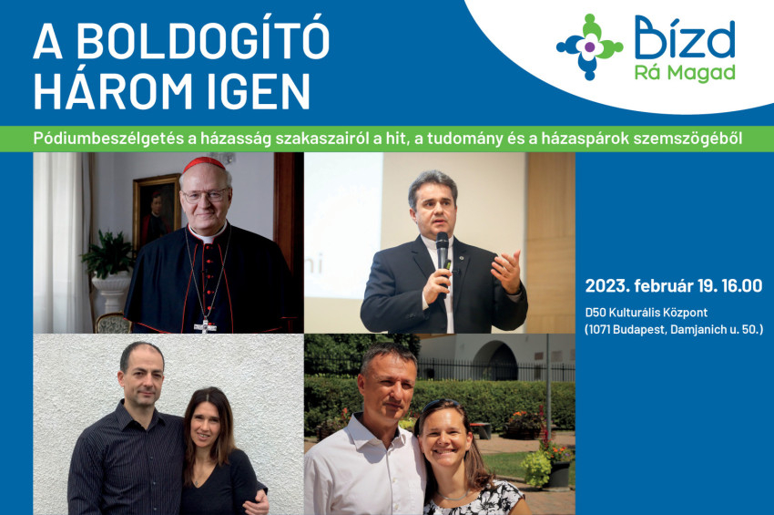 A pódiumbeszélgetés Erdő Péter bíboros, prímás köszöntőjével kezdődik 16 órakor. Ezt követően Papp Miklós, görögkatolikus pap, morálteológus, három lánygyermek édesapja segíti az érdeklődőket abban, hogyan érdemes megoldókulcsot keresni a boldog házasság, mint sokismeretlenes egyenlet megoldásához.