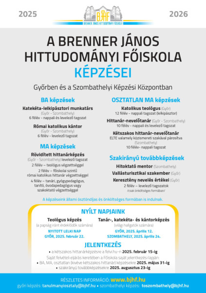 – Keresztény nevelés értékei szakirányú továbbképzési szak (2 félév, Győr)