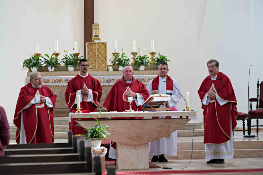 Pécsett szentmisével kezdtük meg a látogatásunkat, és Felföldi László pécsi megyéspüspökkel együtt a Pécsi Egyházmegye alapításának 1012. évfordulójára emlékeztünk. A szentmisét Palánki Ferenc celebrálta, amelyen mindkét egyházmegye papsága és a pécsi hívek is részt vettek.