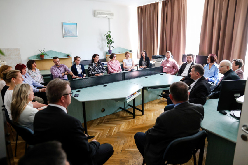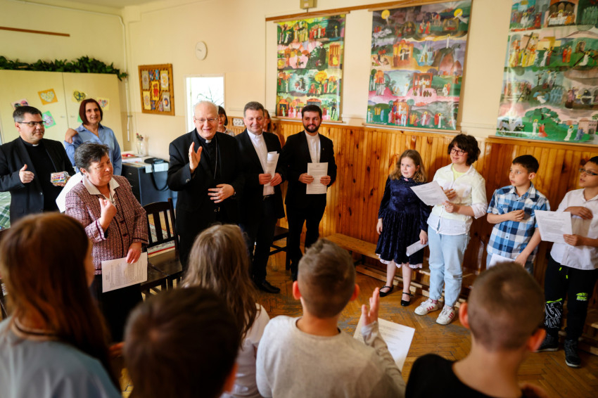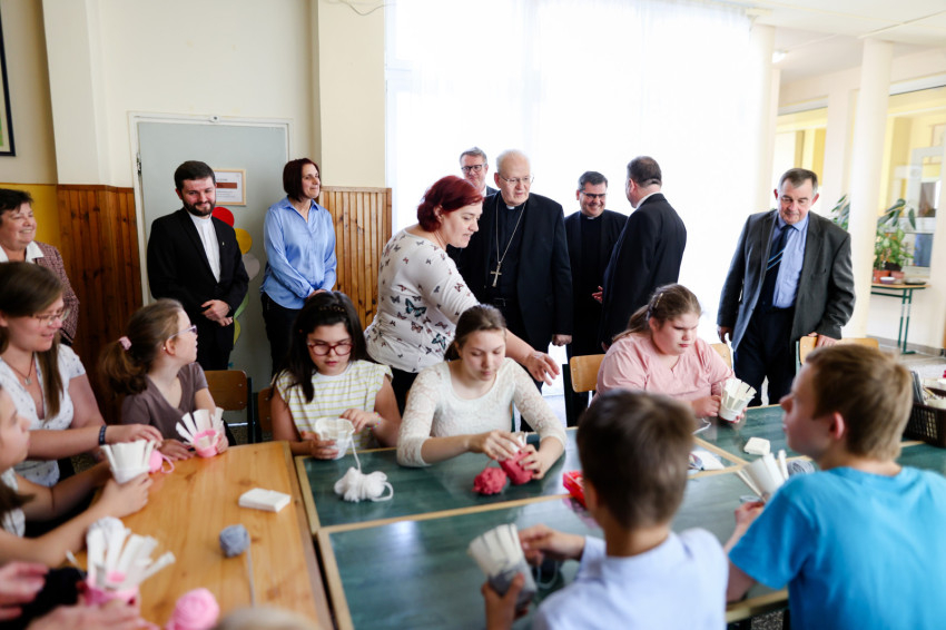 Erdő Péter bíborost az Esztergom-Budapesti Főegyházmegye Katolikus Iskolai Főhatósága (EKIF) munkatársai, köztük Gyetván Gábor főigazgató kísérte el a Salkaházi Sára Katolikus Iskolába, ahol nagyrészt tanulásban akadályozott és értelmileg akadályozott gyerekek, fiatalok oktatását, szakmai képzését végzik.