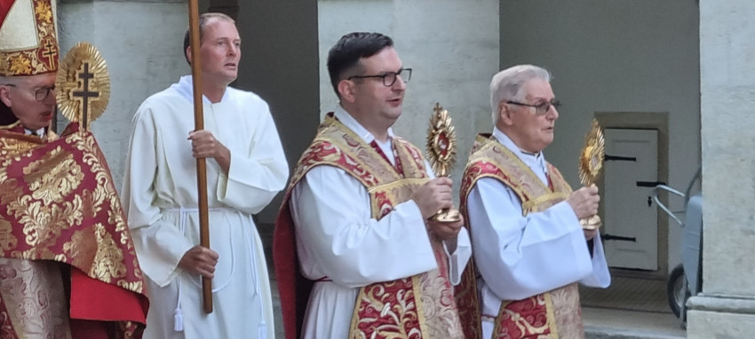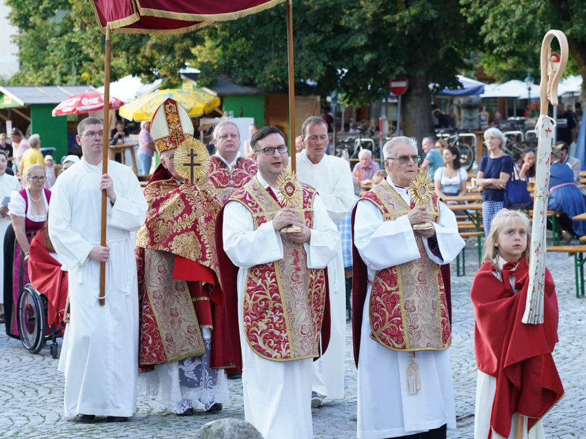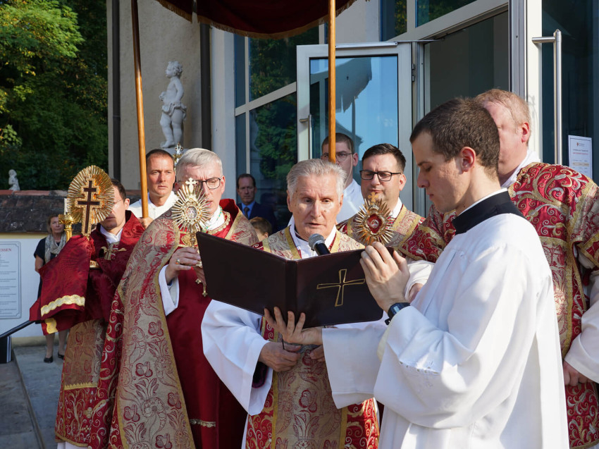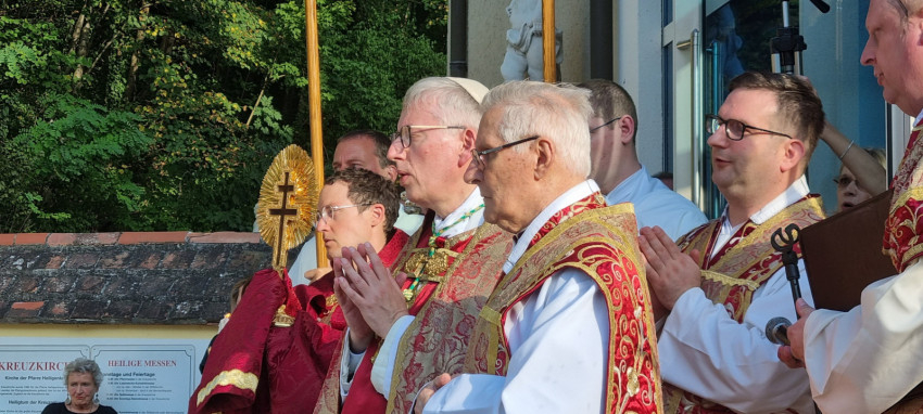 A templomi ünnepséget követően nagyszámú zarándok kíséretében, körmenetben vitték át a Szent Kereszt-ereklyét, valamint Boldog Brenner Anasztáz János vértanú és Boldog Maria Gabriella Sagheddu (20. századi olasz trappista nővér, aki életét Istennek ajánlotta a keresztények egységéért; II. János Pál pápa 1983-ban avatta boldoggá) ereklyéit az újra megnyitott és felújított Szent Kereszt-templomba (Kreuzkirche), ahol megáldották az oltárképeket, Clemens Maria Fuchs osztrák festőművész alkotásait.