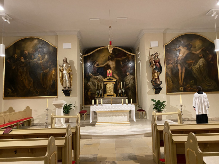 E sokalakos képen Jézus Krisztus keresztről való levételét ábrázolta Clemens Maria Fuchs osztrák festőművész; a szereplők között az egyik kiemelt alak Boldog Brenner János, aki a képen Krisztus lábát tartja a kezében. Az akkor még csak maketten bemutatott teljes templomi átalakítás és a tervezett faliképek mára már elkészültek.