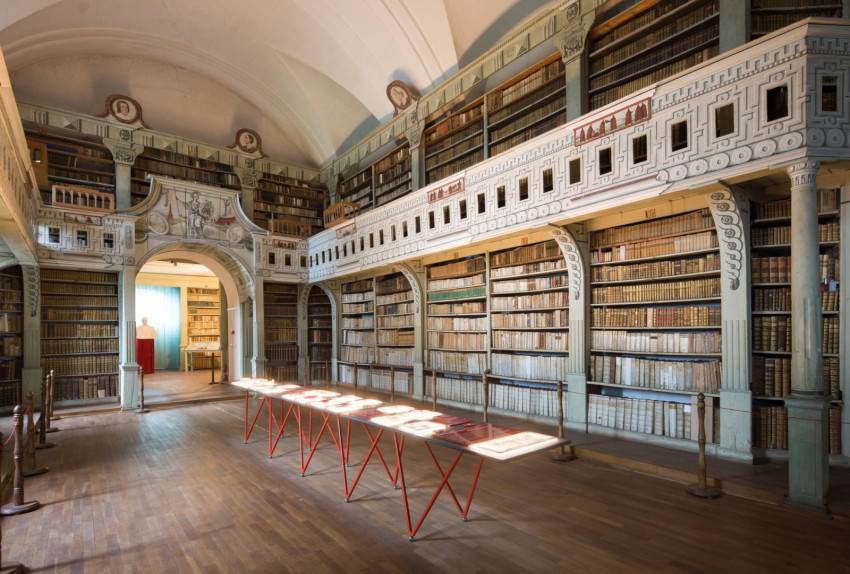 A legszebb szövegrész a gyulafehérvári. Migazzi Kristóf (1714–1803) bécsi érsek (1757-től haláláig, közben váci püspök 1756–57-ben, majd adminisztrátor) valamikor 1781–82-ben adta el könyvtárával együtt Batthyány Ignác (1741–1798) erdélyi püspöknek (1780-tól haláláig), aki a volt fogolykiváltó trinitárius templomból nyilvános könyvtárat hozott létre 1794-ben.