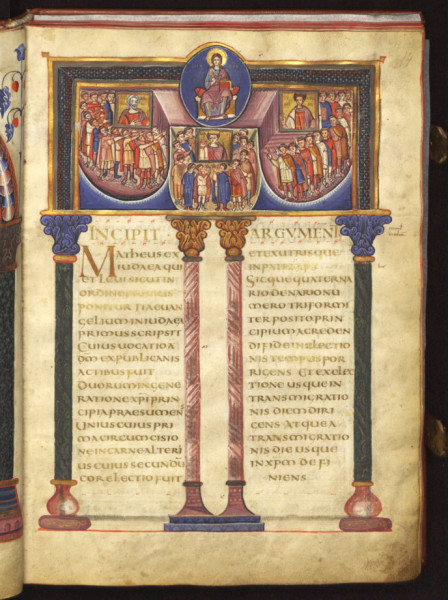 Nagy Károly császár aacheni udvarában 810 körül készült az a négy evangéliumot tartalmazó, 474 oldalból álló, gyönyörű miniatűrökkel, színes oldalkeretekkel díszített liturgikus olvasókönyv, amelyet a császár halála (814) után a hesseni Lorsch kolostorának adományoztak. A borjúbőr pergamenre arany tintával írott kódex neve a tinta színe után Arany Kódex, Codex Aureus. Az első őrzési helye után Lorscher Evangeliar a neve német nyelvterületen. Mindkét fedele elefántcsontból készült ötrészes dombormű, rézkeretben. A kódex a négy evangéliumot tartalmazza. A 9. században még nem bontották fel a lekcionáriumokat napi szentmiséhez rendelt szentleckékre és evangéliumokra, ezért a kötet végén jelzik a vasárnapi és ünnepnapi „perikópáriumot”, vagyis az előírt evangéliumi szakaszokat a korabeli szentírási beosztás szerint.