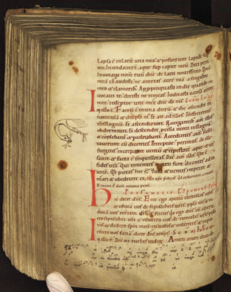 A kódex a 16. században háborús időkben, ismeretlen körülmények között a kolostorból négy részre osztva három városba és négy múzeumba került. Jelenlegi őrzési helyei: az első fedél a londoni Victoria and Albert Museumban, a hátsó fedél a vatikáni Sacro Museóban, Máté és Márk evangéliuma a gyulafehérvári Batthyáneumban, míg Lukács és János evangéliuma a vatikáni Apostoli Könyvtárban van. A két vatikáni rész 1623-ban került Rómába hadizsákmányként.