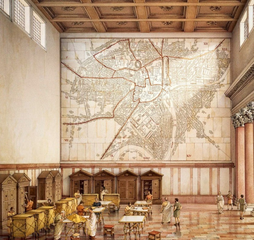 A Forma Urbis, vagyis a város alakja elnevezésű térképet hatalmas márványlapokra vésték fel 203 és 211 között, Septimius Severus császár uralkodása idején. Az Örök Város egyik legritkább és legjelentősebb ábrázolása, amelyet a közönség csaknem egy évszázad után láthat ismét.