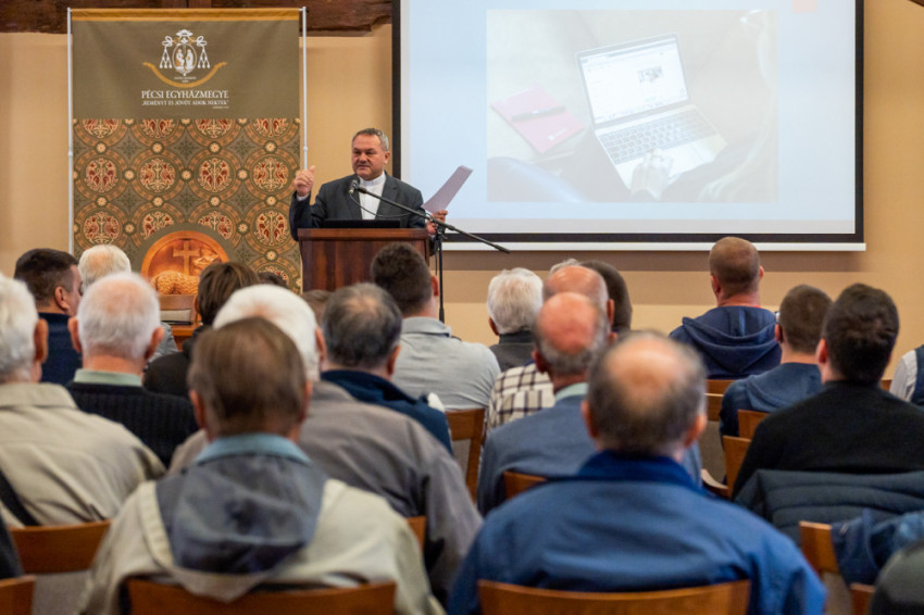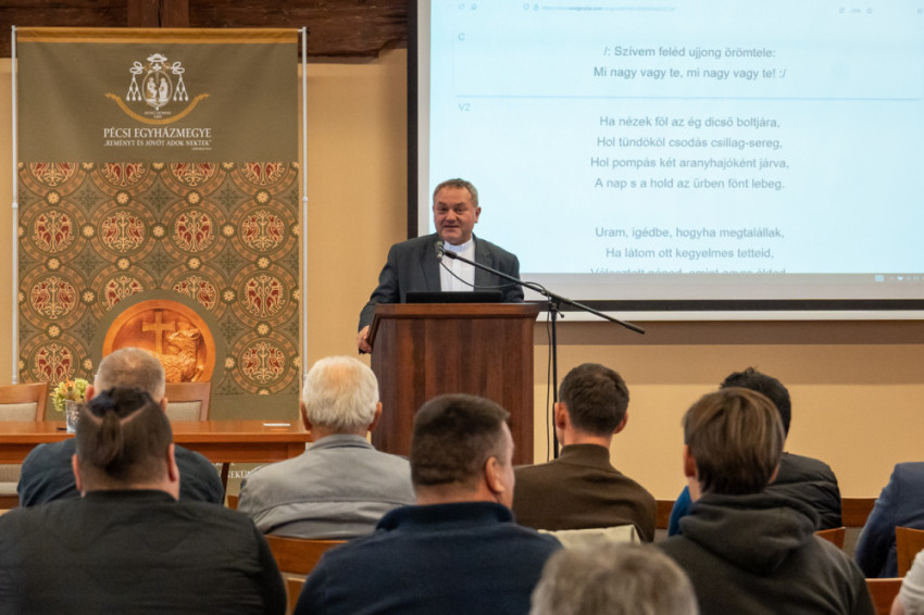 Mi az Isten akarata életünkben? Felismerhető és teljesíthető-e abban a korban, amikor nincs valódi csend körülöttünk, amikor mindenki telefonozik, miközben nincs valódi társas kapcsolata – kapcsolódott az előtte szólóhoz Felföldi László püspök előadásában.