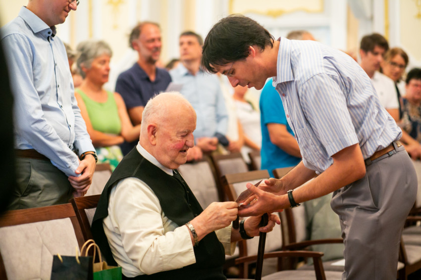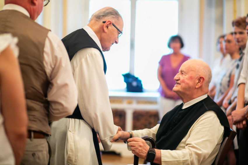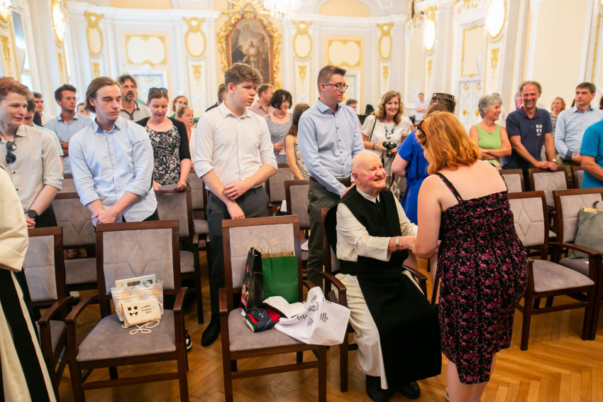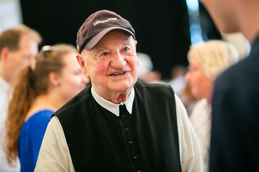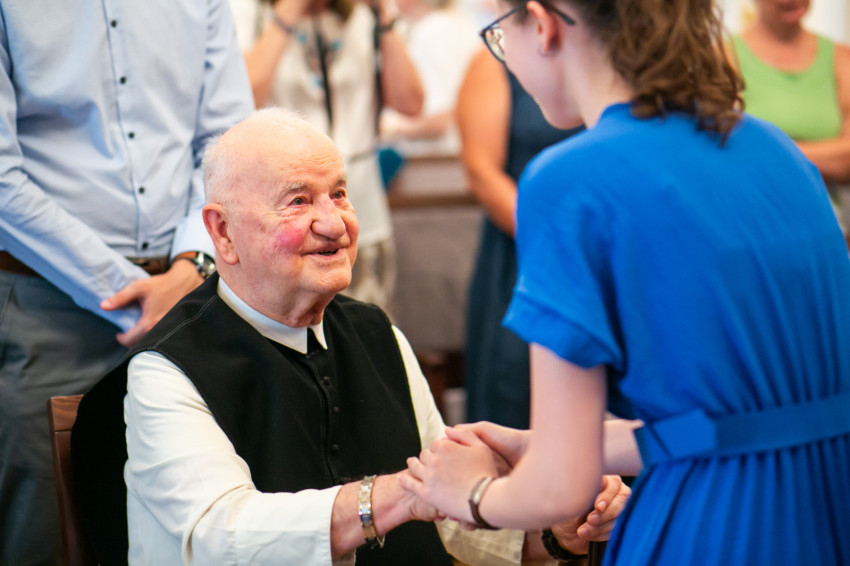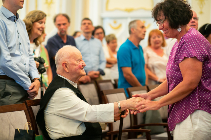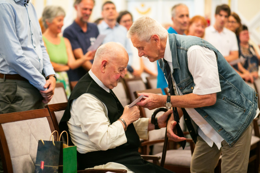 Marton Bernát ciszterci atya búcsúbeszédében leszögezte: egész életében komolyan vette az isteni Gondviselést, amely a véletlenek tömkelege, álruhában. Mindig vakon követte. Ma már szó szerint is, mert a szeme annyira megromlott, hogy alig lát.