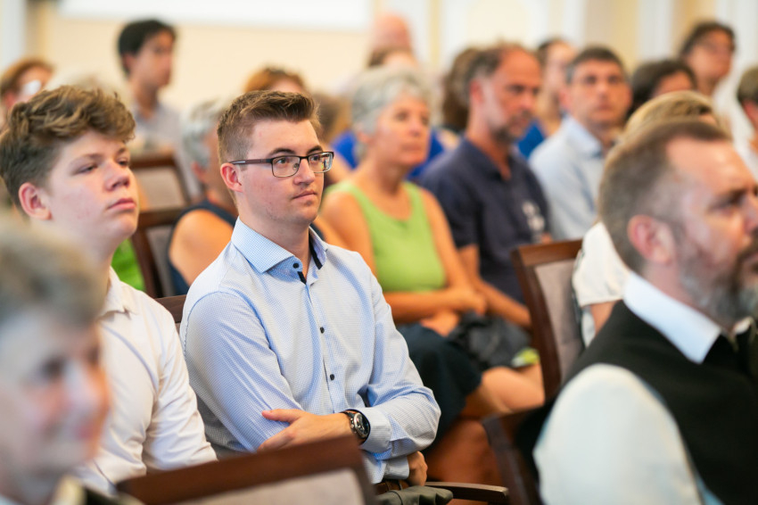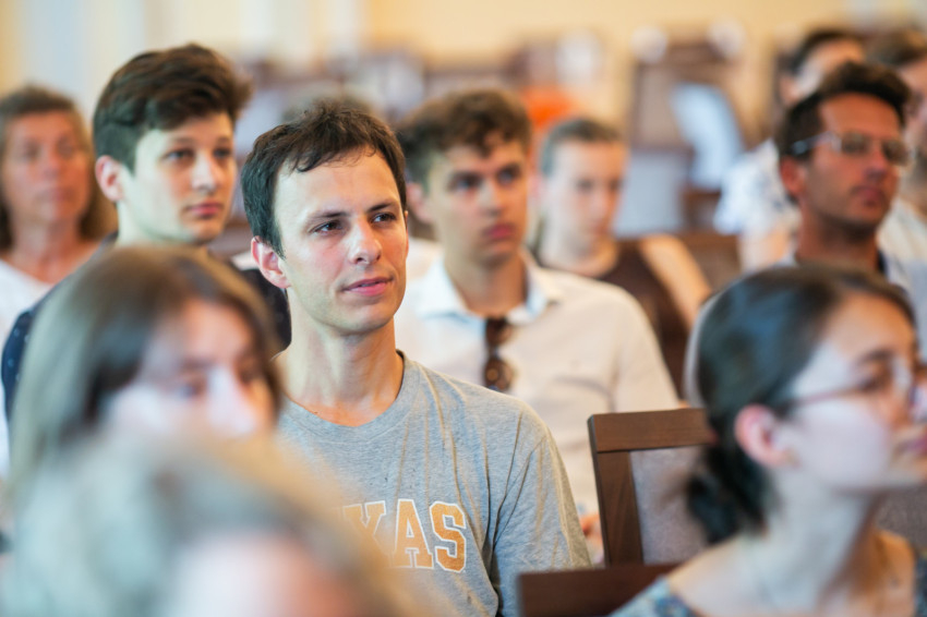 A július 16-án, kedden délelőtt a Budai Ciszterci Szent Imre Gimnáziumban rendezett ünnepség a Szentlelket hívó katolikus népénekkel kezdődött: „Jöjj, Szentlélek, Úristen!”