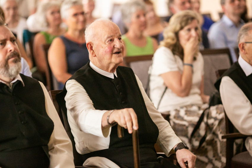A kezdet és a vég feszültségében éljük meg ezt a pillanatot. „És mi azt köszönjük neked, kedves Bernát atya, ami közte történt. Azt köszönjük neked, hogy sok-sok megforrt borként tekinthetünk arra a szőlőtőre, ami te vagy!”