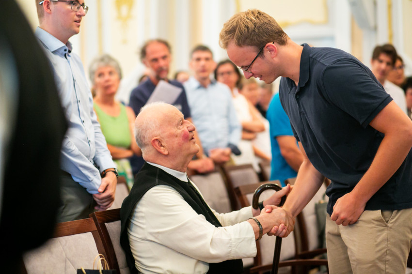 A rendezvény moderátora Tóth Márton volt, a budai ciszterci öregdiákok képviseletében. Kiemelte: különleges alkalomra, „ballagásra” jöttünk össze, elbúcsúzunk egy nagyszerű embertől, akit mindannyian szeretünk, akitől rengeteg jót tanultunk.