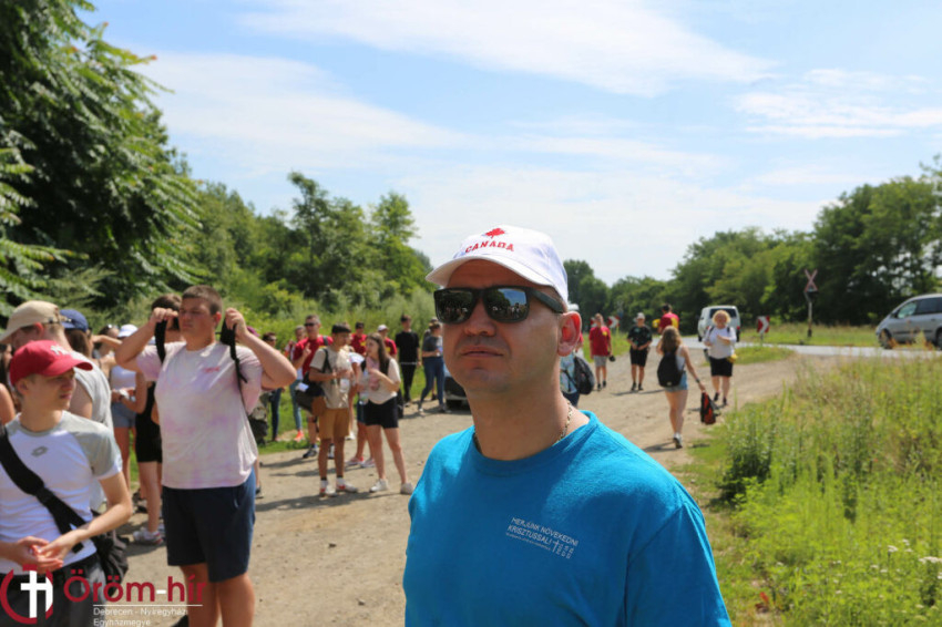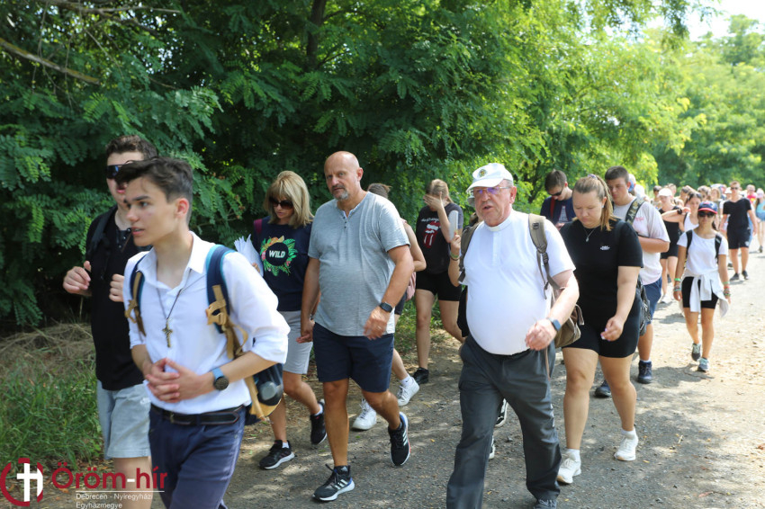 A gyalogos zarándoklaton a püspök kíséretében a fiatalok rózsafüzért imádkoztak, csöndes és énekes percek váltották egymást, amit az útszéli kereszteknél Csapó Márton atya néhány mondata egészített ki.