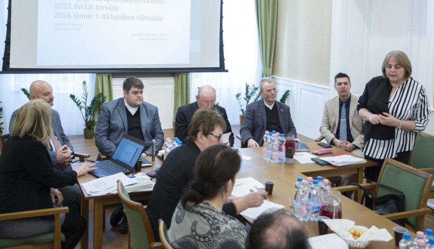 A tanácskozás szakmai részében Béres Diána kamarai jogtanácsos ismertette a pedagógusok életpályájáról szóló 2023. évi LII. törvényt és a 2024. január 1-től hatályos jogszabályokat. Kovács István oktatásszervezési igazgató szintén törvényi változásokról, minősítésekről beszélt.