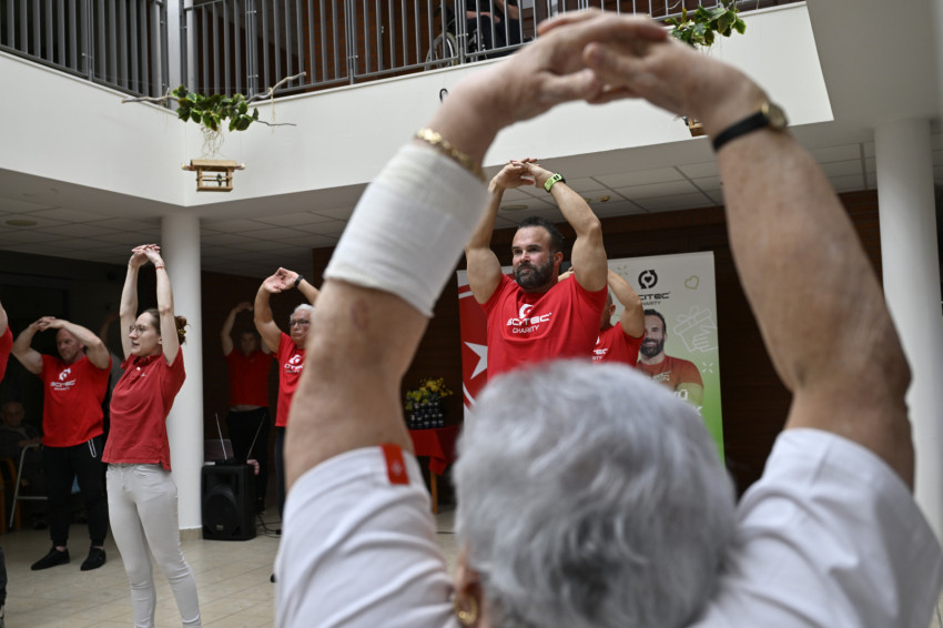 Az edukációs videós tartalom mellett április 23-án, „A Mozgás Napja” kezdeményezéshez kapcsolódva rendhagyó sportnapot is tartottak a Nógrád vármegyei Baglyaskő Idősek Otthonában. Az intézményben élő több mint száz lakó a Scitec Nutrition „Jószívű Testépítők Akcióban” elnevezésű program jótékony márkanagyköveteivel – Bohos Kornéllal, Kathi Bélával, Kiss Lászlóval, Kormos Zoltánnal és Szmereka Lászlóval – az oktatóvideóban szereplő gyakorlatokat közösen végezték el, a demens lakóknak pedig külön tornát tartottak, ezzel is felhívva a figyelmet arra, hogy a biztonságos, támogató környezetben való közös mozgás fontos lépés egy inkluzívabb társadalom megteremtésében. A közös edzés és az adományok átadása után a Jószívű Testépítők örömmel beszélgettek a lakókkal, hiszen az emberi kapcsolatok is nagyon fontosak az idősek jó közérzetének és méltóságának megőrzéséhez.