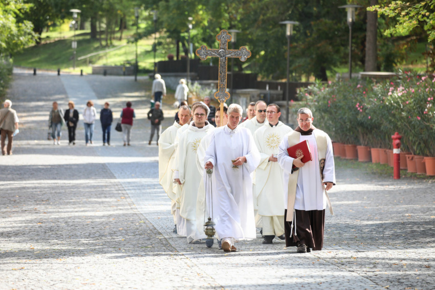 A kegyhelyigazgató köszöntötte a püspököt, a paptestvéreket és a zarándokokat, majd elmondta, hogy Szentkúton éveken át hagyománya volt a szlovák–magyar imanapnak, melyet a járvány megszakított. Idén elhatározták, hogy felújítják ezt a hagyományt a Fájdalmas Anya búcsújának keretében.