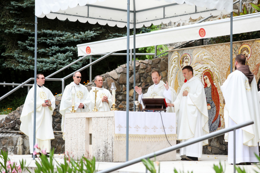 Mivel a pozsonyi érsek egészségügyi okok miatt személyesen nem tudott részt venni a szentmisén, Haľko József pozsonyi segédpüspök, a külföldi szlovákok püspöke celebrálta a szentmisét, és ő olvasta fel Zvolenský érsek prédikációját, melyet magyarul Molnár Tamás pozsonyi magyar lelkész tolmácsolt. A szentmisén koncelebrált Patay Jakubrafael OFM kapucinus atya Budapestről, Viliam Paulicek pilisi (Pleš) plébános, Zemjánek Efrém OFM füleki magyar káplán és Orosz Lóránt OFM, a Mátraverebély-Szentkút Nemzeti Kegyhely igazgatója.
