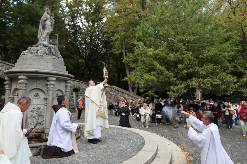 Molnár Tamás atya beszámolt arról, hogy a mártaverebély-szentkúti kegyhely együttműködik a szlovák hívekkel, sokszor jönnek ide szlovák vagy vegyes családok. Megemlítette, hogy az elmúlt napokban zajlott az 52. Nemzetközi Eucharisztikus Kongresszus, illetve a pápalátogatás. „A Szentatya az apostoli útjai után a Santa Maria Maggiore-baziliklába megy köszönetet mondani, mi pedig itt mondhattunk most hálát az elmúlt hetek kegyelmeiért. Csodálatos volt a szervezés Budapesten is és Szlovákiában is. Gyönyörű időjárást is kaptunk mindehhez.”