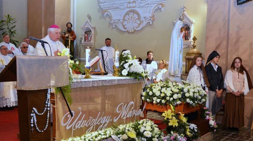 Fazekas Ferenc szabadkai püspök homíliájában a hit, a bűnbánat és a béke üzenetét állította a hívek elé, felidézve a fatimai gyermekek példáját és a Szűzanya szeretetteljes üzenetét.