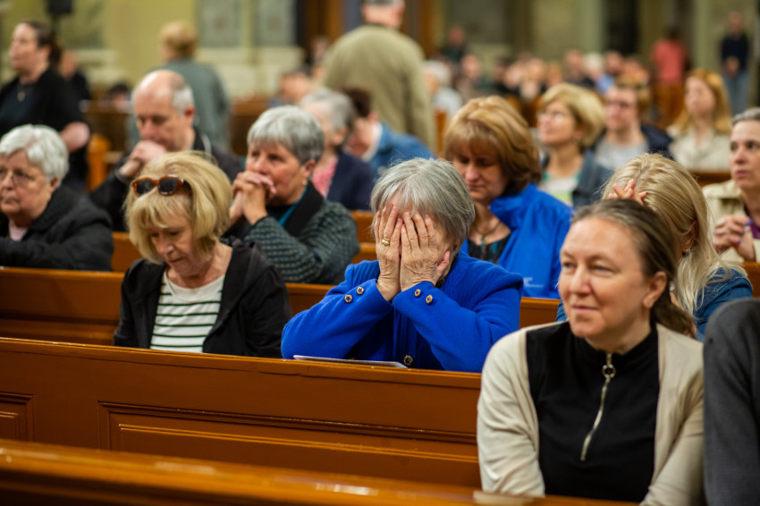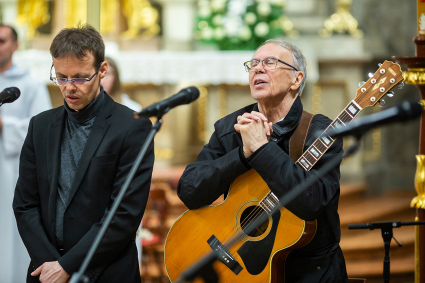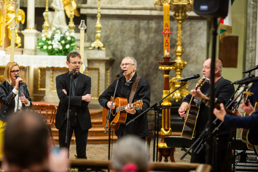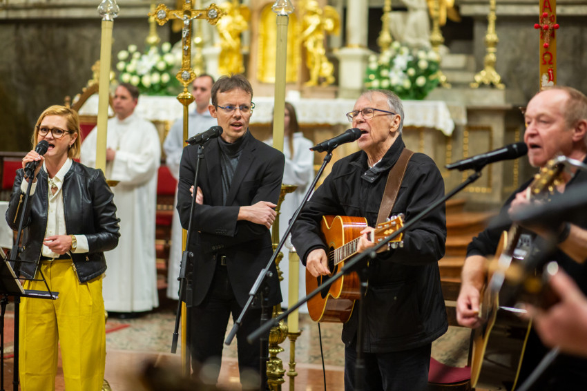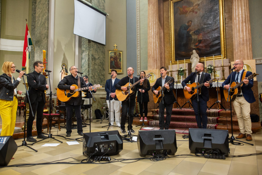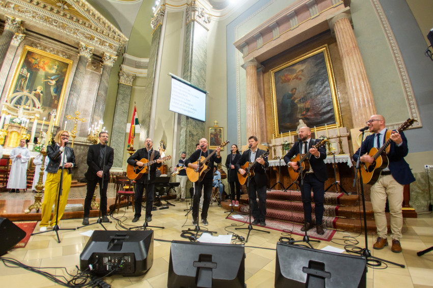 A liturgiát követően rövid örömzenélésre maradt a különleges formáció. A keresztény könnyűzene doyenje, Sillye Jenő vezetésével a békéért és Ferenc pápa szolgálatért felhangzott a Jöjjön a földre igazi béke; majd hazánkért, és „hogy unokáink gyermekei is Szent István népe maradhassanak”, a Hargitáig szállt a dal. Ne félj, mert megváltottalak! – végül ezt énekelte a csapat és a hozzájuk csatlakozó hívek.