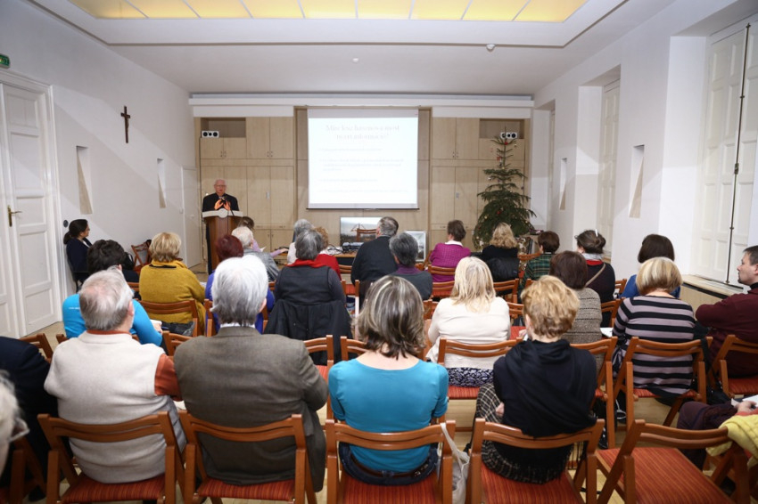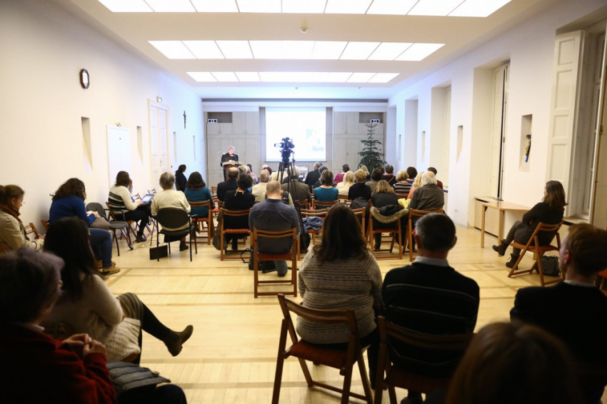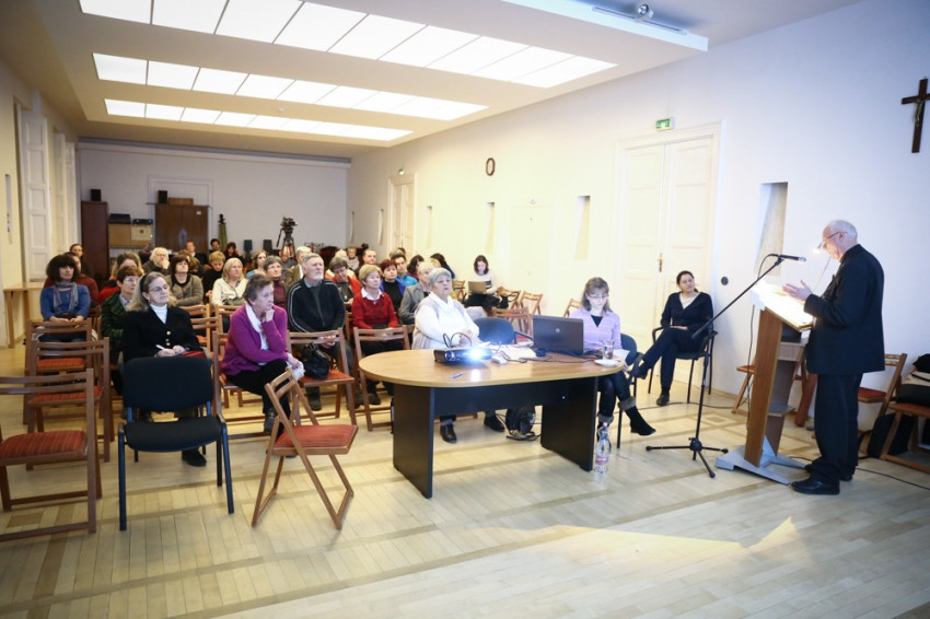 Varga Lajos váci segédpüspök, az Országos Katolikus Gyűjteményi Központ igazgatója a főpapi öltözékekről beszélt az érdeklődőknek. Előadása elején kifejtette, miért jó e tudásanyag birtokába jutni: hasznos ismeret a liturgiatörténettel foglalkozóknak; a levéltárosoknak, többek között a középkori oklevelekben használt kifejezések megértéséhez; az ikonográfia művelőinek is segít egy-egy portré, illetve más típusú kép értelmezésében.
