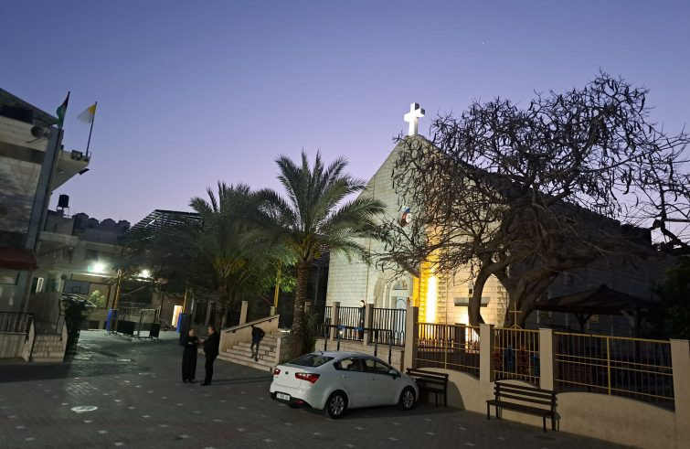 A gázai plébános, Gabriel Romanelli elmondta: „Gáza alig több mint ezer kereszténye a Szent Család latin plébánián és a Szent Porfíriosz görög ortodox plébánián talált menedéket. Gyakorlatilag a gázai keresztény családok mindegyike otthontalanná vált a bombázások miatt.” A latin plébánián az otthonukat vesztett keresztények napjainak rendjét az imádság szabja meg: reggeli szentmise, délutáni rózsafüzér szentségimádással, esti szentmise.
