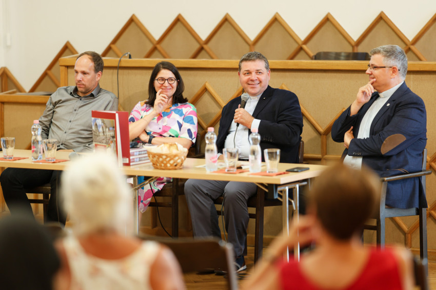 Tóth Tamás, a Magyar Katolikus Püspöki Konferencia (MKPK) titkára, a pápalátogatás koordinátora, Sebő Balázs, az MKPK Titkársága Sajtóosztályának vezetője és Sümeghy Kata munkatársuk Kuzmányi István, a Magyar Kurír igazgató-főszerkesztője kérdéseinek segítségével idézték fel a pápalátogatás rengeteg élményét, miközben Merényi Zita fotóriporter, a pápalátogatás egyik fotósa örökítette meg a visszaemlékezést.