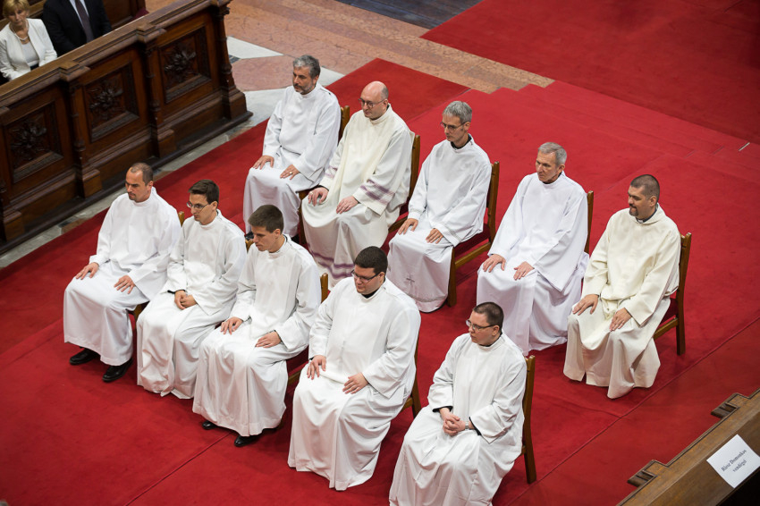 Erdő Péter bíboros június 20-án diakónussá szentelte Forgács Balázs, Eredics Gergő, Kiss Géza Imre, Riesz Domonkos ötödéves papnövendékeket. Az ünnepi szentmise keretében került sor hat családos férfi állandó diakónussá szentelésére is. Lénár Andor, Matlári Gergely, Nyulasi Zoltán István, Őri Imre Ferenc, Spala Tamás és Zarka Dénes két év készület után részesült az egyházi rend első fokozatában, hogy szolgálatukkal segítsék plébánosuk munkáját. A hívő közösség közvetítésen keresztül kapcsolódhatott be a szentelési szertartásba.