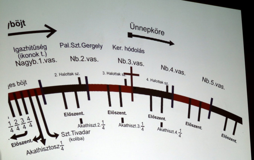 Induljunk el az úton! – invitált a főpásztor. – A húsvét előtti negyvennapos időszakot a bizánci egyházban megelőzi néhány hét. A negyven nap az év 365 napjának egy tizede. Az a tized, amelyet felajánlunk Istennek zsenge áldozatként. Négy hét előzi meg a negyven napot és a nagyhetet. A tizenegy hét vámos és farizeus vasárnapjával (idén január 17.) kezdődik. A bizánci egyházban minden vasárnap a feltámadás ünnepe.