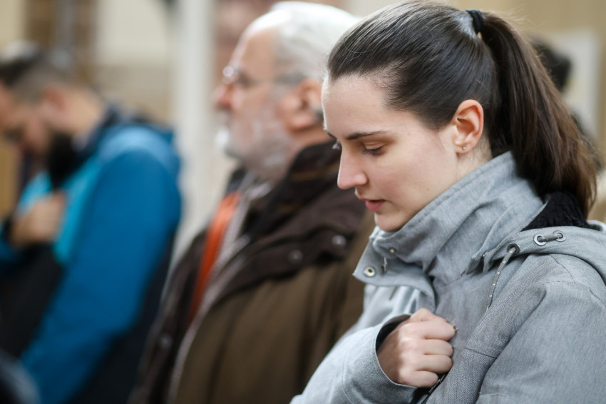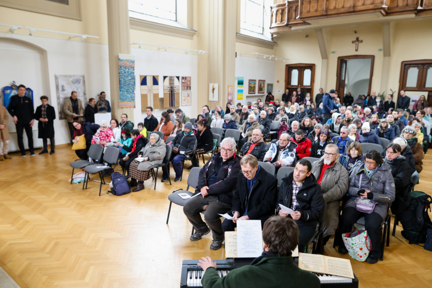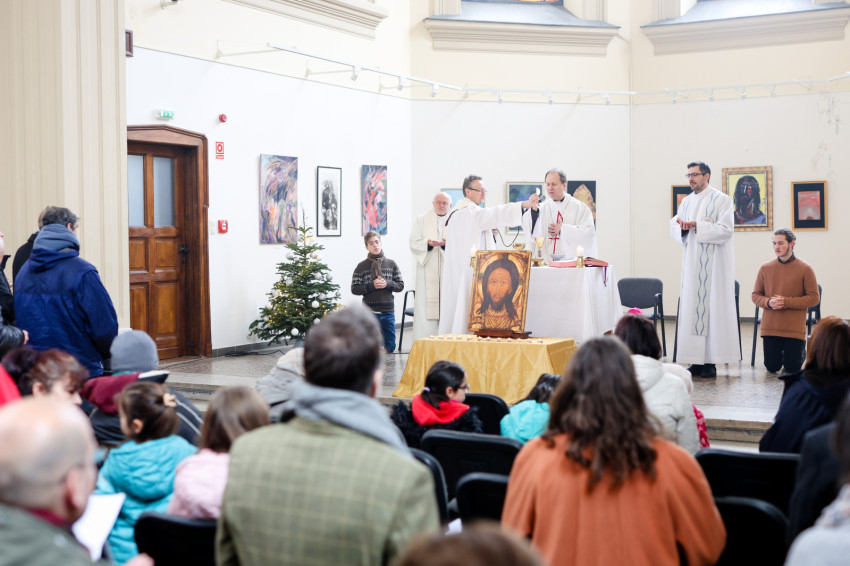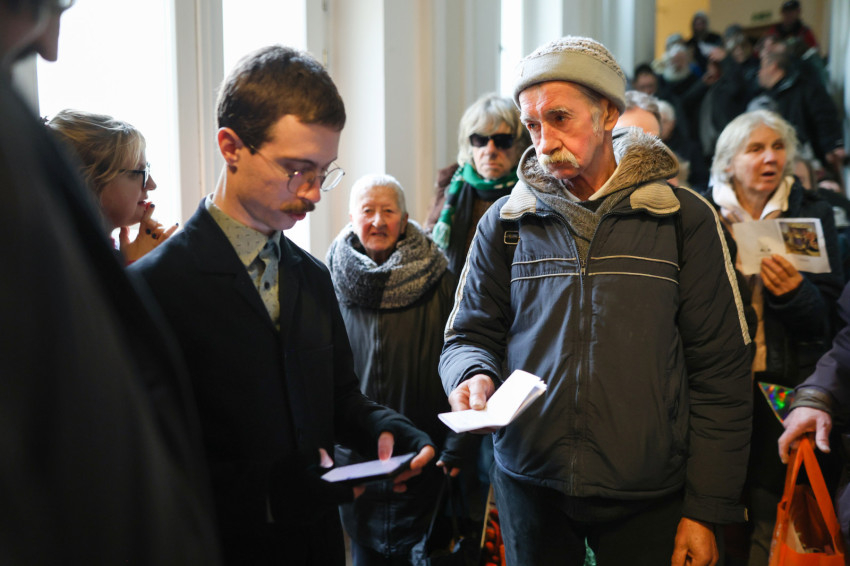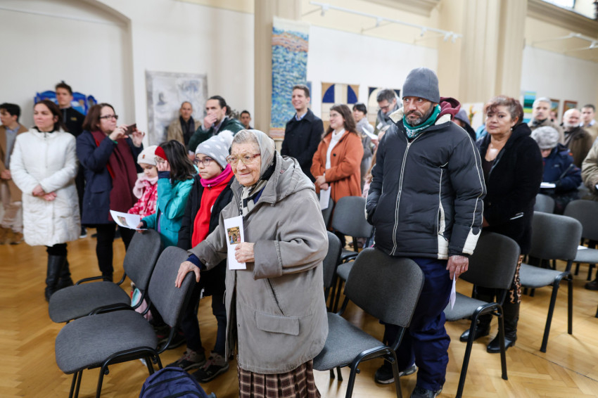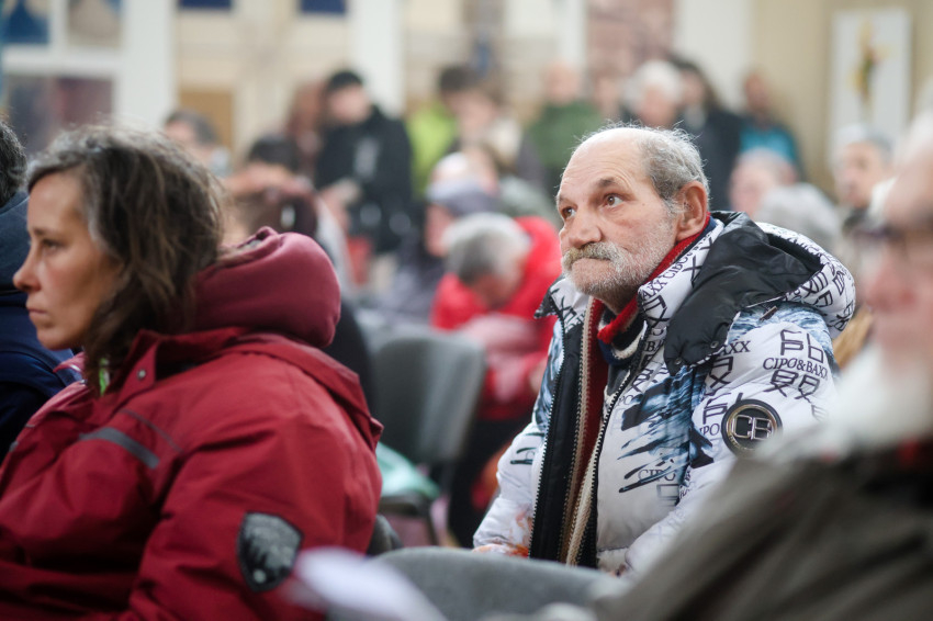 A szép jezsuita kápolna zsúfolásig megtelt szegény vendégekkel – a rendezők az első sorokba tessékelték őket, míg maguk hátul álltak.