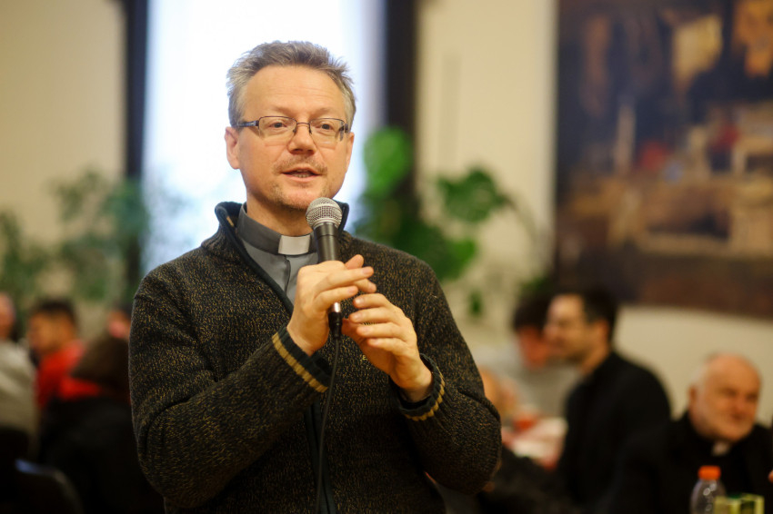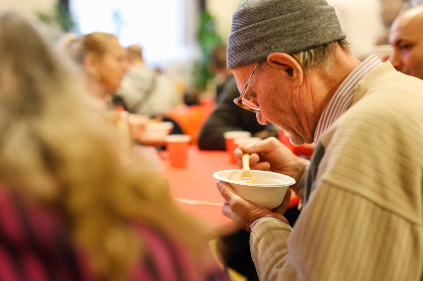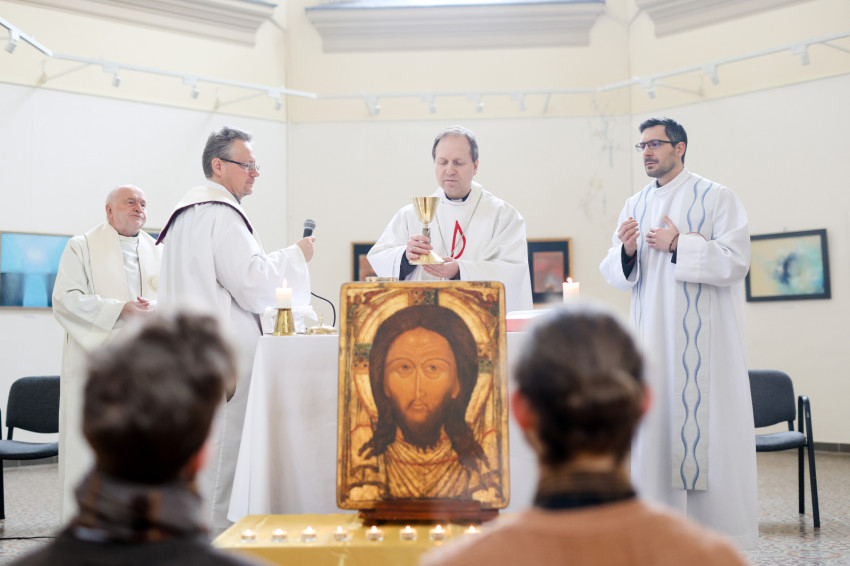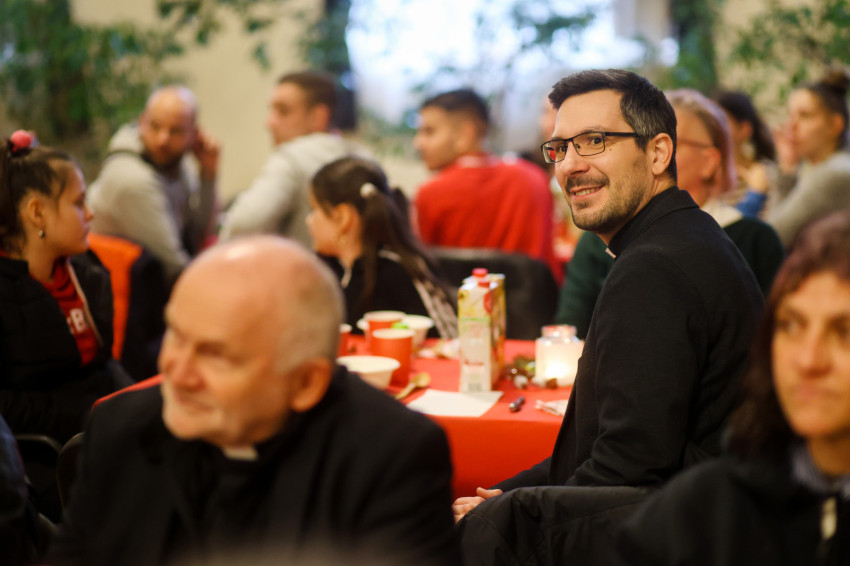 Az ebédet a Párbeszéd Házának kápolnájában bemutatott szentmise előzte meg. Ahogyan Mohos Gábor esztergom-budapesti segédpüspök szentbeszédében hangsúlyozta: ez a sorrend is azt fejezi ki, hogy