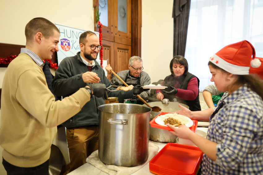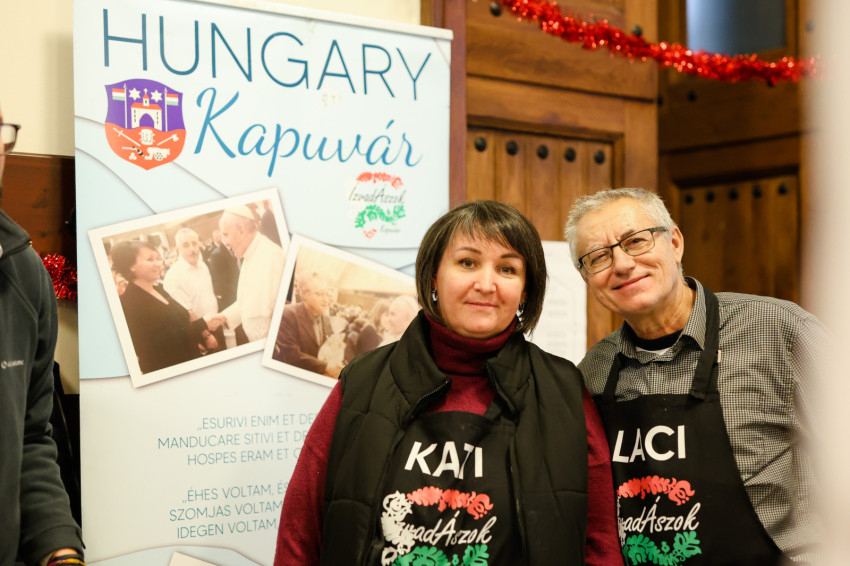 A Kapuvári Ízvadászok már évek óta fáradhatatlanul, mosolyogva töltik azzal karácsonyuk első napját, hogy kora reggel furgonba pakolják az összetevőket, útra kelnek, hogy azután kondérban ünnepi menüt főzzenek – ha kell, a sekrestyében, ha kell, akkor a hideg utcán.