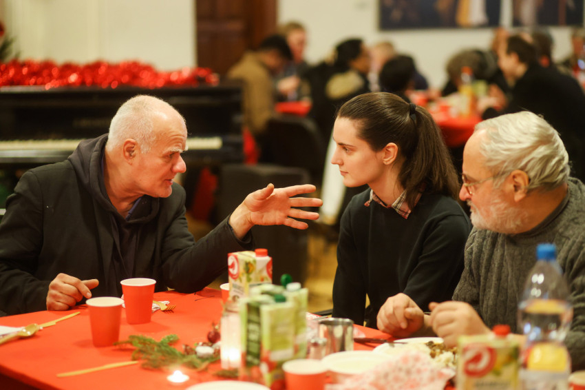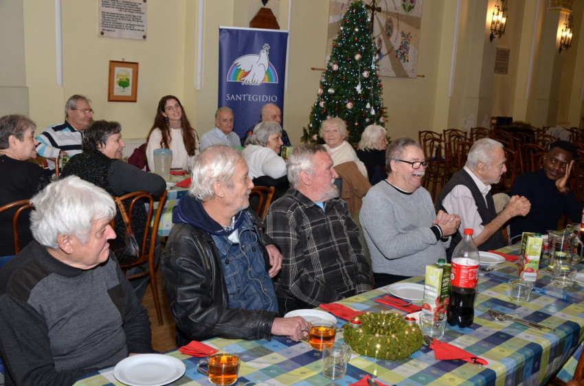 XVI. Benedek pápa mondta a Sant’Egidio közösségről: „Nálatok összekeveredik az, aki szolgál azzal, akit szolgálnak.” A karácsonyi ebédet nem a szegényeknek adjuk, hanem a szegényekkel együtt költjük el. De igaz ez a műsorra is. A vendégek és a segítők maguk is hozzájárulnak saját művészetükkel a műsorhoz.