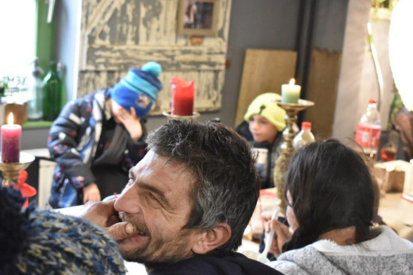 Monoron egy német hajléktalan bácsi, aki megfagyott volna, ha egy kedves család nem talál rá az erdőben és nem fogadja be a tanyáján egy lakókocsiba, azt az ígéretet kapta, hogy a közösségtől kap karácsonykor ebédet. Ám mivel az olvadás után hatalmas sár volt, ehhez traktor is kellett, de szerencsére ez sem volt akadály, közösségünk egyik tagja meglátogatta őt 17 éves, a gimnáziumban németül tanuló lánya társaságában. Stefan nagyon boldog volt, meg is könnyezte, hogy valaki gondolt rá.