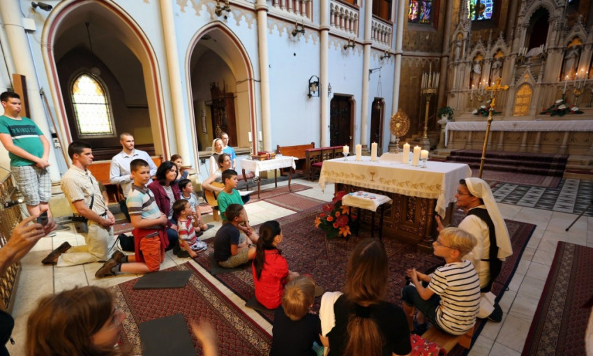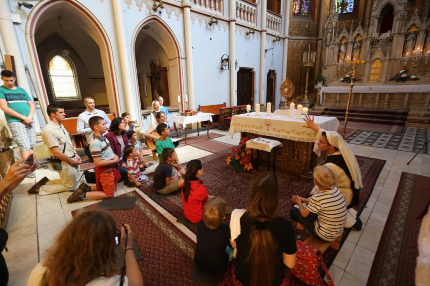 – A hitből forrásozó megtapasztalás sokat segít a gyerekeknek az Eucharisztia titkának felfedezésében, fogalmának megértésében. Abból indulunk ki, hogy hitünk szerint Jézus jelen van az Oltáriszentségben, mégpedig valóságosan, az egész lényével van jelen. Krisztus, aki meghalt értünk és feltámadt, most is él, és itt van velünk. A gyerekeknek elképesztő érzékük van a szerető jelenlét iránt. Ez bennünk, felnőttekben kissé talán eltompult már, mi gyakran túlbonyolítjuk a dolgokat. A pedagógiai feladat abban áll, hogy a gyerekek szíve, amely olyan érzékeny a szeretetre, fokozatosan megnyíljon az istenkapcsolatra. A kicsik a saját szívükhöz közelebb kerülve, azon keresztül érkezhetnek meg abba a jelenlétbe, amit az Úr a szentségimádás során felajánl számukra. A gyerekeket tehát a szívük útján vezetjük el a Jézussal való találkozásra. Az Eucharisztia azt jelenti: hálaadás. Szeretnénk, ha a hálaadás lelkületét is elsajátítanák. Jézus jelenlétét ünnepeljük a szentmisében, fontos tehát, hogy tudjunk örülni és hálásnak lenni ezért a jelenlétért. A szentségimádás kiváló lehetőséget kínál erre.
