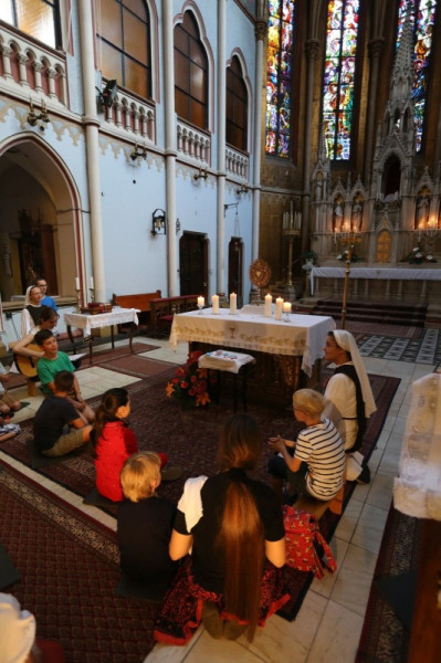 – Kapcsolatra nevelünk, a kapcsolat pedig kialakítja a lélek benső struktúráját, ezért mindez lassan magától válik belső indíttatássá. A kapcsolat élménye formálja a gyermekeket. Ehhez nélkülözhetetlen a gyakorlás, a rendszeresség, az elkötelezettség. Tudjuk, hogy szolgálatunk a családok támogatásával válhat teljessé. A szülők egy része kezdetben kicsit aggódott amiatt, vajon hogy fogják bírni a gyerekek a szentségimádást, nem lesz-e sok nekik a szentmise után. A kicsiknek azonban ez nem okoz gondot. Kapcsolati szinten, a szív szintjén hihetetlenül mély vágyak és igények élnek bennük. A szentségimádás során teret adunk annak, hogy Jézus vágyai és a gyerekek vágyai egymásra találhassanak. Hiszünk Jézus jelenlétében, a vele való kapcsolat erejében és vonzásában: erre bízzuk rá magunkat.