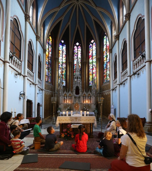 Versegi Beáta nővér, az Eucharisztikus Élet mozgalom vezetője a közelgő Nemzetközi Eucharisztikus Kongresszus előkészítő munkáiban is tevékeny részt vállal, néhány éve pedig gyermekeknek vezet szentségimádást az Örökimádás-templomban. Ki ne szeretné Jézus Krisztus társaságában, az ő jelenlétéből erőt és bátorságot merítve megélni a mindennapokat? A Nyolc Boldogság közösség szerzetesnővérével a gyermek-szentségimádásról beszélgettünk.