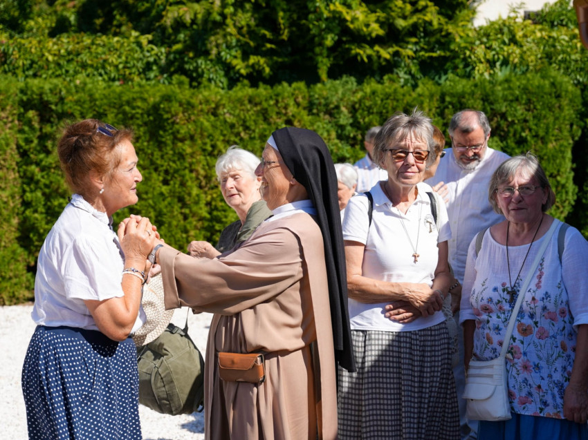 A filmvetítés után a nővérek agapéra invitálták a jelenlévőket. A kolostorudvaron elszórtan kisebb-nagyobb beszélgető csoportok verődtek össze; voltak, akik felidézték a régi időket, vagy épp azon derültek, hogy ki-ki ráismert a harminc évvel korábbi önmagára a kisfilm képkockáin. Mások sétáltak egyet a nővérek által gondosan karbantartott kertben, megcsodálták a bőséges paradicsom- és uborkatermést, és a 35 fokban is gyönyörűen pompázó örökzöldeket.