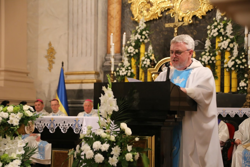 A szentmisét Paulo Costa brazil bíboros mutatta be, aki 11 ezer kilométert utazott, hogy zarándokként kifejezze szolidaritását Ukrajnával. A liturgián részt vett az apostoli nuncius, Visvaldas Kulbokas érsek, az ukrán püspöki kar tagjai és több egyházmegye papjai is.