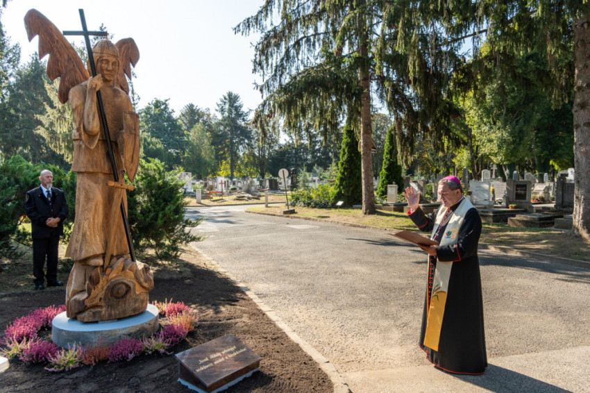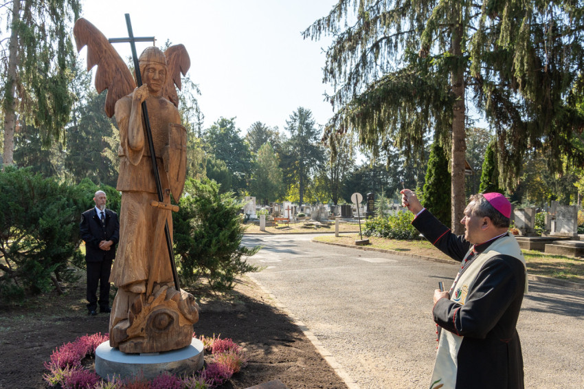 A főpásztor végül megáldotta Szent Mihály arkangyal szobrát.