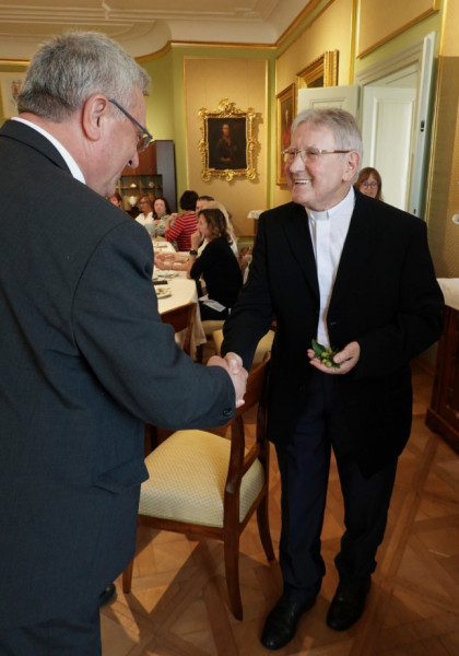 A Győri Egyházmegye Püspöki Hivatalának munkatársai bensőséges ünnepség keretében köszöntötték születésnapja alkalmából Németh Lászlót.