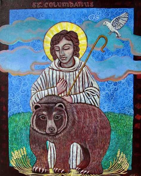 Monostorokat alapított, melyeket szigorú regulával vezetett. Kora kiemelkedő apostolának tartották, aki új lendületet adott a lanyhuló keresztény életnek. Észak-Olaszországban, a bobbiói kolostorban halt meg 615-ben. Földi maradványait az ottani székesegyház kriptájában őrzik. Az 1940-es években avatták szentté.