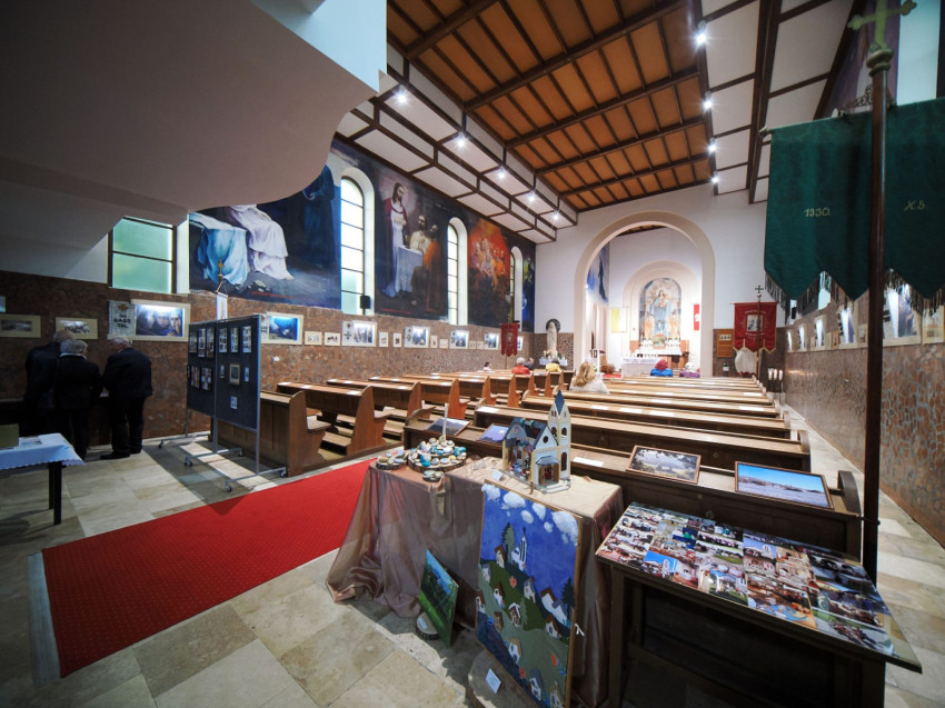 Az ünnep tiszteletére megnyílt fotókiállítás a templom falai között idézi fel a hárskúti közösség múltját: az építkezés pillanatait, a felszentelés örömét és a hetvenöt év eseményeit, melyek során annyi imádság és hála szállt Isten felé.