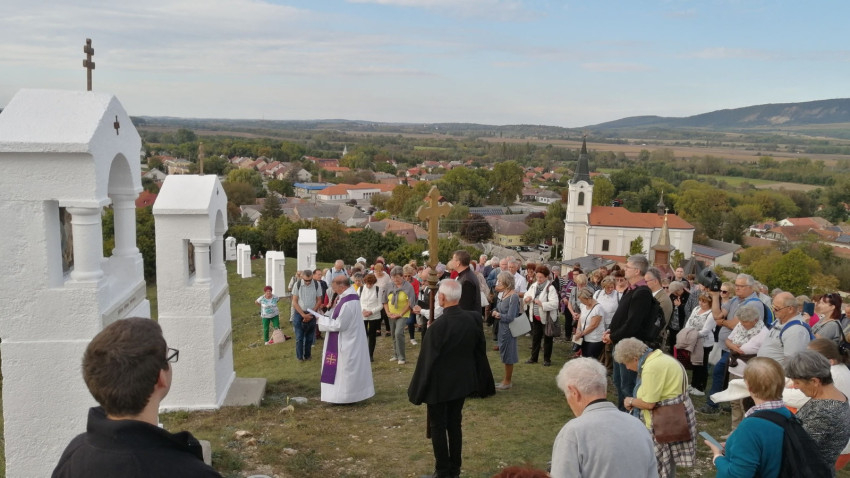 A kálváriára felkapaszkodva Varga András salgótarjáni plébános Mária keresztútját olvasta fel. A résztvevők így elmélkedték végig Jézus szenvedését, és helyezték saját keresztjüket az Úr lába elé.
